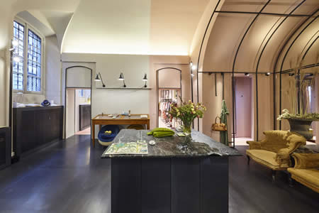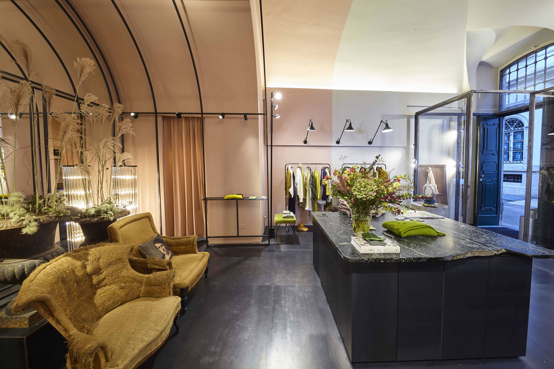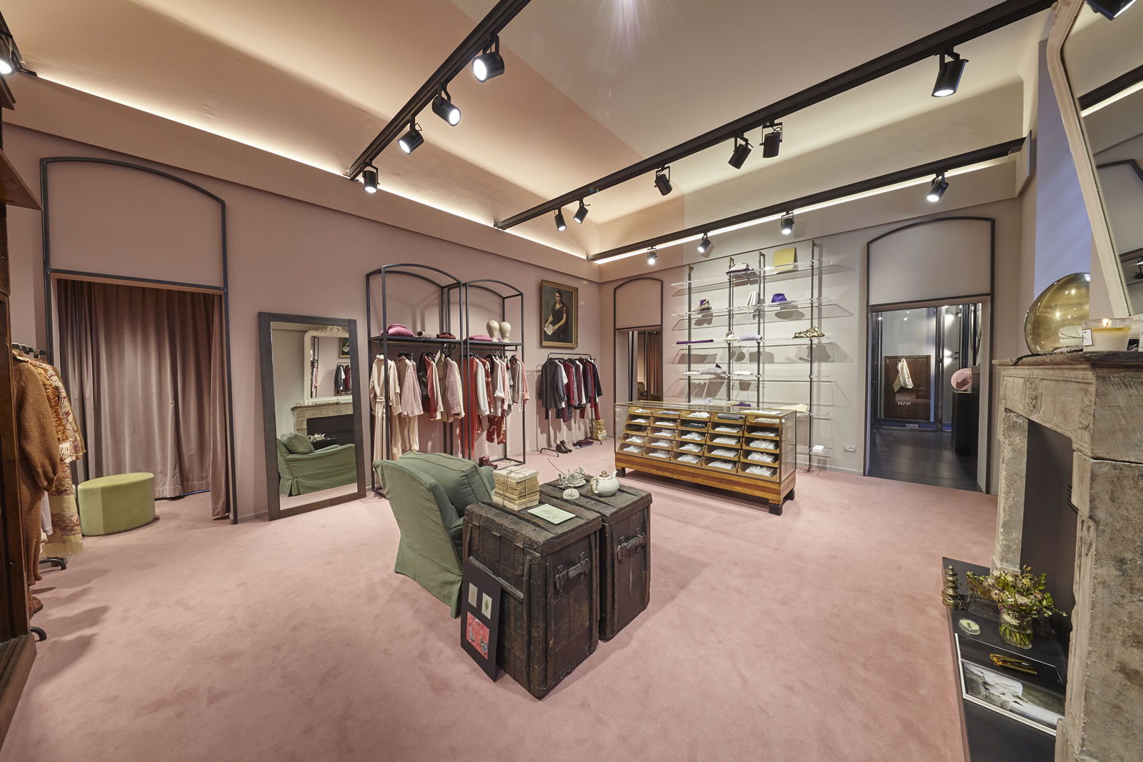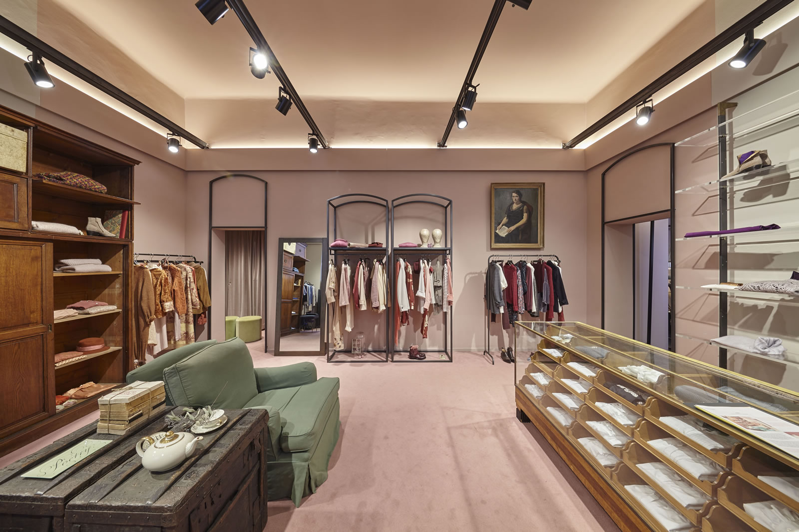 Leaving its historic headquarters in Via Manzoni, MARI reopens in Via Bigli with a completely new concept. Renewed in design, the new space develops all on one floor. It is a house-boutique with no shop windows, just an entrance door, enlivened by objets trouvés, furniture with a retro flavor, paintings on ancient pink walls and small vintage objects. Details to admire? Fashion accessories to buy? Lines get blurred in this well-studied, or one should say, highly researched space, where Mari, the owner, gives us the opportunity to breathe the air of a real home, her home. The choice of brands and objects all speak of her and those who enter are first and foremost guests rather than customers.