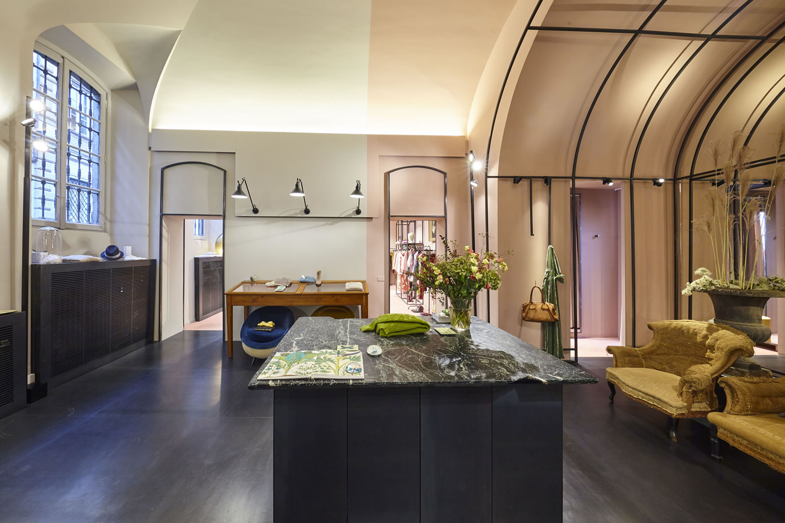 Since its debut, MARI stands out for its extraordinary atmosphere, which draws its aesthetic from the imagery of the historic Parisian fashion ateliers, places of timeless elegance where fashion “is sold” but where, above all, it is an état d’esprit.